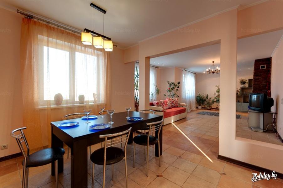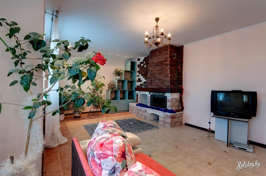 В доме может разместиться компания от 6 до 10 человек. Можно организовать мероприятие на природе возле дома, пожарив шашлыки, а можно в гостиной с камином, где можно попеть караоке. Кухня в доме оборудована всей необходимой бытовой техникой.