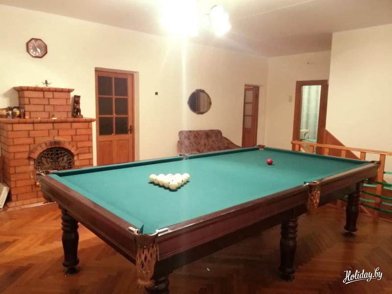 К услугам гостей просторный двухуровневый дом с 2 каминами, бильярдом, банкетным залом на 14 посадочных мест. В доме предусмотрено 9 спальных мест (+3 для детей+5 на матрасах и раскладушках). В доме имеется центральное отопление.