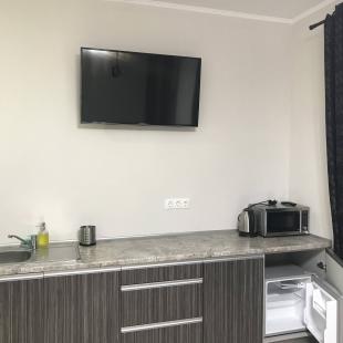 Для проживания на территории нашей базы отдыха «Камыши» мы предоставляем благоустроенный деревянный дом в аренду вместимостью до 4 человек. В доме есть гостиная, мини-кухня с бытовой техникой, ванная комната с душевой кабиной и санузлом, великолепная терраса с мангальной зоной. Для маленьких гостей предоставляется детская кроватка. Работает бесплатный Wi-Fi, телевидение, имеется частная парковка для автомобилей.