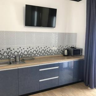 Дом №6 в аренду под Брестом рассчитан на семью или компанию из 4 человек. Домик состоит из гостиной зоны, мини-кухни с бытовой техникой, ванной комнаты, комнаты для отдыха с бильярдной зоной. При необходимости для малышей можно установить детскую кроватку. Работает бесплатный Wi-Fi и телевидение. Имеется парковка для автомобилей. Для детей оборудована детская площадка (качели, горки, батут).
