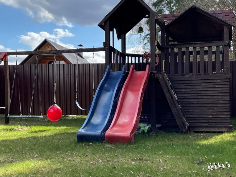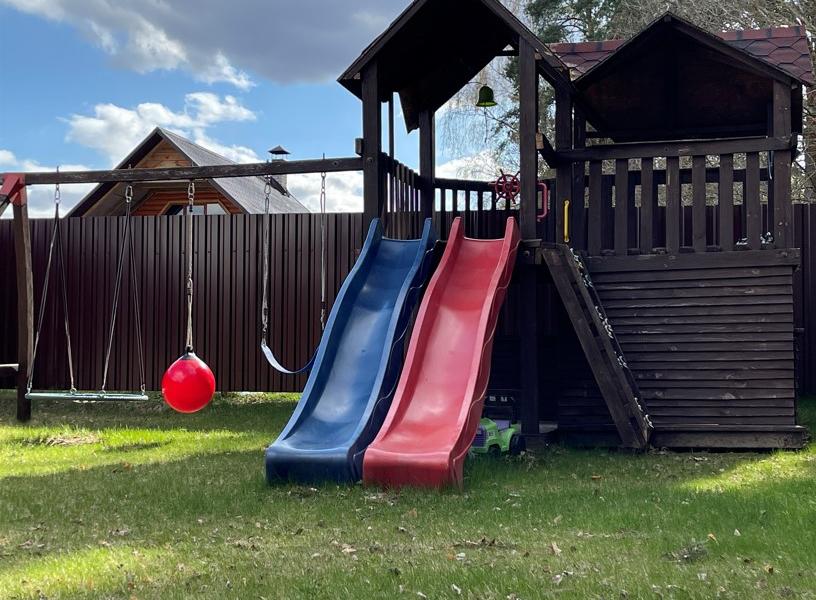 Дом для отдыха расположен на берегу оз. Войсо в д. Муражи Браславского района. Гостей приятно удивят отличный подъезд, близость живописного водоема, лесного массива. К услугам путников комфортабельный двухэтажный жилой дом, рассчитанный на восемь спальных мест с возможностью подселения на дополнительные кровати. На первом этаже можно расслабиться на огромном диване у ЖК телевизора с диагональю 60 дюймов, доступен высокоскоростной оптиковолоконный Интернет с бесплатным WiFi. Зона отдыха граничит с кухней, оборудованной индукционной электроплитой, посудомоечной машиной, микроволновкой, холодильником, электрочайником, вытяжкой, набором посуды. Ванная комната также расположена на первом этаже. Здесь гости могут освежиться в душе, воспользоваться стационарным феном, постирать вещи в стиральной машине. На второй этаж веден плавная лестница с промежуточными двумя площадками, выходящая в верхний холл, огражденный в целях безопасности кованкой. К услугам гостей три уютные спальни с набором мебели для размещения вещей. Имеющиеся кровати: 160*200 см, 180*200 см, 2 кровати 90*200 см и одна двуярусная кровать со спальными местами 90*200 см. Дом оборудован вторым выходом на террасу. На территории расположена баня с необходимым набором банных принадлежностей, а также огражденный пруд.
