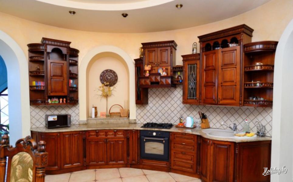 В самом доме все предусмотрено для комфортного отдыха гостей. Здесь имеется оборудованная кухня, камин, В доме имеется отопление, подогрев пола. На втором этаже расположена зона отдыха с теннисным столом.