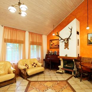 Отличный трёхэтажный коттедж располагает большим банкетным залом в аренду площадью 45 кв. метров. В просторном каминном зале есть плазменный телевизор со спутниковым ТВ и DVD. В коттедже имеется стол для игры в пинг-понг.