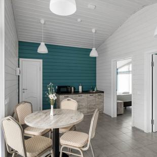Дома оборудованы просторной общей комнатой с мини-кухней и обеденным столом, двумя зеркальными спальнями с односпальными кроватями, а также гостям предоставлены чайник, микроволновая печь, посуда, холодильник, фен, полотенца, телевизор. Дом оснащен кондиционером.