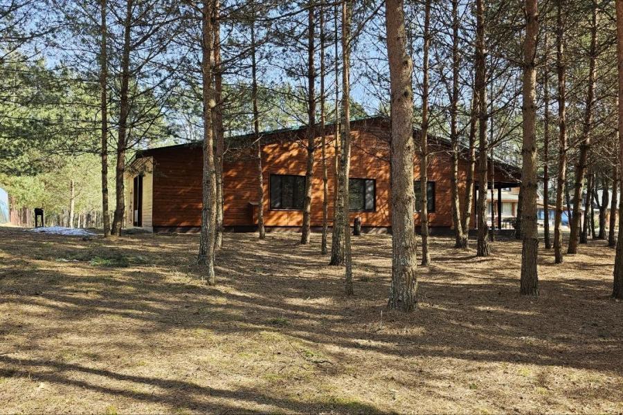 «Озёрный» представляет собой одноэтажный деревянный дом общей площадью 130 м.кв. с отдельным входом в дом и отдельным выходом на крытую террасу площадью 50 м.кв. Дом хорошо утеплён и эффективно отапливается (радиаторы отопления под окнами, отопление пола под плиткой керамогранит), дом готов принимать гостей круглый год. Зимой в доме всегда будет тепло, а в самые жаркие дни лета в доме царит приятная прохлада. Комфорт и оснащение в доме на самом высоком уровне, созданы все условия для великолепного семейного отдыха с детьми, а также для встречи друзей. При строительстве дома использовались только экологически чистые материалы высокого качества. Краски компании Tikkurila. Отличный интернет (оптоволокно) от Белтелеком (тариф «Ясна 200»)! WIFI — бесплатно! Вся мебель, бытовая техника, сан. техническое оборудование абсолютно новые! Современная станция очистки воды — в водопроводе по всему дому питьевая вода! Большая гостиная площадью 50 м.кв., 3 просторных отдельных спальни, по 20 м.кв. каждая. Два больших санузла с душевой, по 6 м.кв. каждый. Стиральная машина. Современная и функциональная кухня (Австрия), два холодильника No Frost, индукционная электрическая плита, СВЧ, чайник, полный набор посуды и столовых приборов. Большой стол, стулья из массива гивеи (Малайзия). В гостиной новый Smart TV Samsung Ultra HD 65", YouTube и т.д. Большой диван, кресла из натурального ротанга, журнальный стол. В просторных спальнях кровати с ортопедическими матрасами, большие двуспальные диваны, шкаф с зеркалом, комод, журнальный столик. Большие окна с видом на лес. На всех окнах москитные сетки. Окна закрываются рол-шторами «Blackout», не пропускающими свет. Все межкомнатные двери из натурального дерева (массив ольхи). Освещение в доме обеспечивают современные и стильные светодиодные светильники. На крытой террасе стол, скамейки, шезлонги, подвесное кресло, зона отдыха и релакса на свежем воздухе. Гостям предоставляется бесплатно: постельное белье, комплект полотенец (большое и среднее), кухонные полотенца, средство для мытья посуды, туалетная бумага, пакеты для мусора. На всех окнах в доме установлены москитные сетки. В индивидуальной зоне барбекю: мангал, решётка, шампуры, веер, щепки — бесплатно. Villa Forest House имеет отдельный въезд на территорию комплекса (ворота и калитка). Парковка авто на территории комплекса бесплатно, рядом с домом.