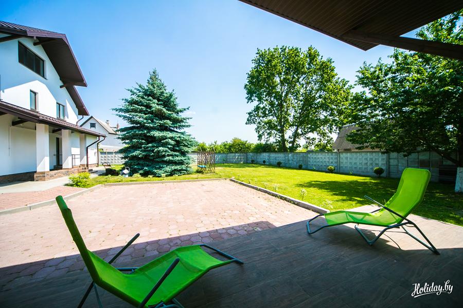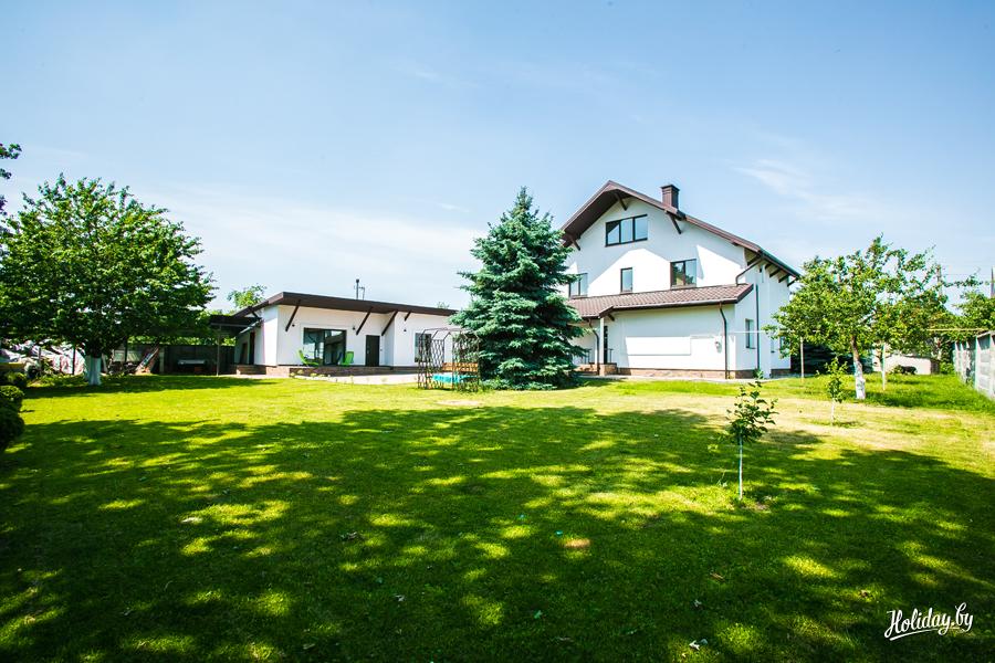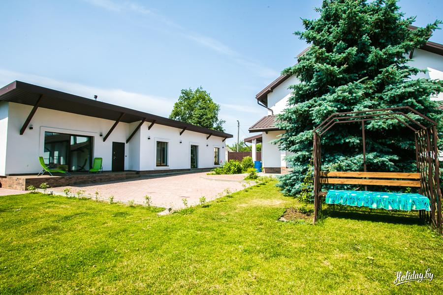 Территория агроусадьбы «Голубая ель» под Минском аккуратная и ухоженная, есть парковка для автомобилей. Здесь можно наслаждаться живописными пейзажами, тихой и расслабляющей атмосферой, где нет скопления машин и городского шума. Во дворе дома есть зона для приготовления шашлыка. Для ознакомления с окрестностями можно совершить пешие и велосипедные прогулки, устроить состязания в спортивных играх. Чтобы получить максимальное удовольствие от загородного отдыха, стоит попариться в настоящей русской бане с жаркой парилкой, душистыми вениками, бассейном и комнатой отдыха.