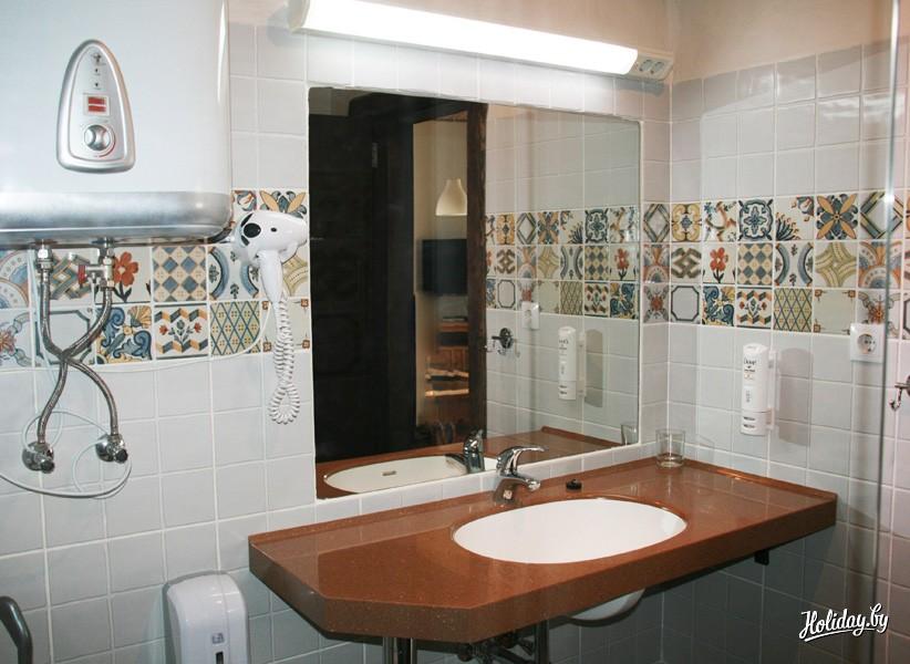 В коттедже под Минском тесно сплелись традиции и современный комфорт. В отделке дома используется натурального дерево, паркетный пол. На территории загородного комплекса расположена традиционная русская баня на дровах с бассейном. Если же вы привыкли к городскому комфорту, в коттедже есть современный душ и туалетные принадлежности.