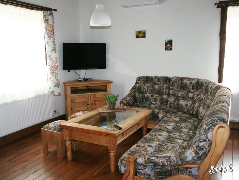 Коттедж под Минском «Улучшенный» приятно удивит своим комфортом, аккуратной обстановкой, наличием необходимых атрибутов: свежее белье, полотенца, фен, электрочайник, микроволновая печь, холодильник, жидкокристаллический телевизор, кондиционер.