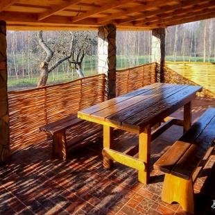В 210 км от Минска в Витебской области и в 280 км непосредственно от областного центра находится усадьба «Кантри с террасой» – дом, где каждый сможет ближе познакомиться с культурой и традициями Беларуси, насладиться природным богатством страны, отдохнуть, обрести гармонию с собой и окружающим миром. Этому здесь способствует каждая деталь. В первую очередь, конечно, сама усадьба. В ней может разместиться 10 человек, для комфорта которых предусмотрены три спальных комнаты с отдельными санузлами. Устраивать семейные вечера можно в гостиной с камином или на террасе с видом на яблоневый сад. Особую атмосферу дому придает мебель. Вся она выполнена вручную из натуральной древесины, благодаря чему воздух в усадьбе исключительно чистый и по-особому приятный и ароматный.
