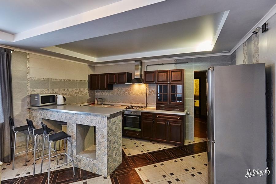 Внутри дом полностью готов к проживанию городского жителя. 4 спальные комнаты для 22 гостей с ночевкой, ванная комната, 3 санузла, кухня с бытовой техникой, банкетный зал. В общей комнате отдыха подключено спутниковое телевидение. Если возникает желание спеть любимую песню или провести конкурсы по время торжества, то в распоряжении гостей караоке. В первом этаже выход на деревянную террасу для чаепитий или летнего позднего завтрака.