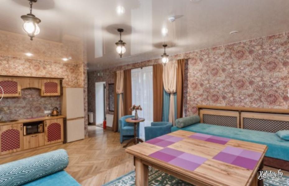 Апартаменты №2 в коттедже на сутки «Луизиана» в 20 км от Гомеля предназначены для компании из 4-х человек. В апартаментах есть две спальные комнаты с панорамными окнами, просторная гостиная с мягкими диванами, мини-бар, санузел с душевой и набором полотенец. При необходимости можно оборудовать еще одно спальное место. Апартаменты оснащены телевизором, холодильником, чайником, микроволной печью, феном, работает WI-FI.