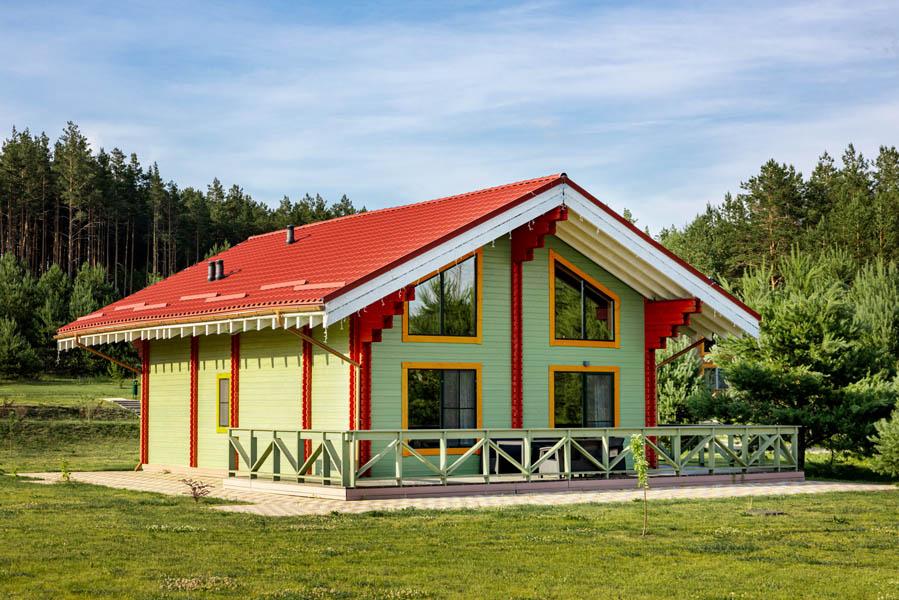 Находясь в непосредственной близости к озеру, окруженные деревьями, такие светлые и просторные благодаря большим окнам, данные коттеджи отлично подойдут для размещения семей с детьми и компании близких друзей. В доме также возможно организовать два дополнительных спальных места.
