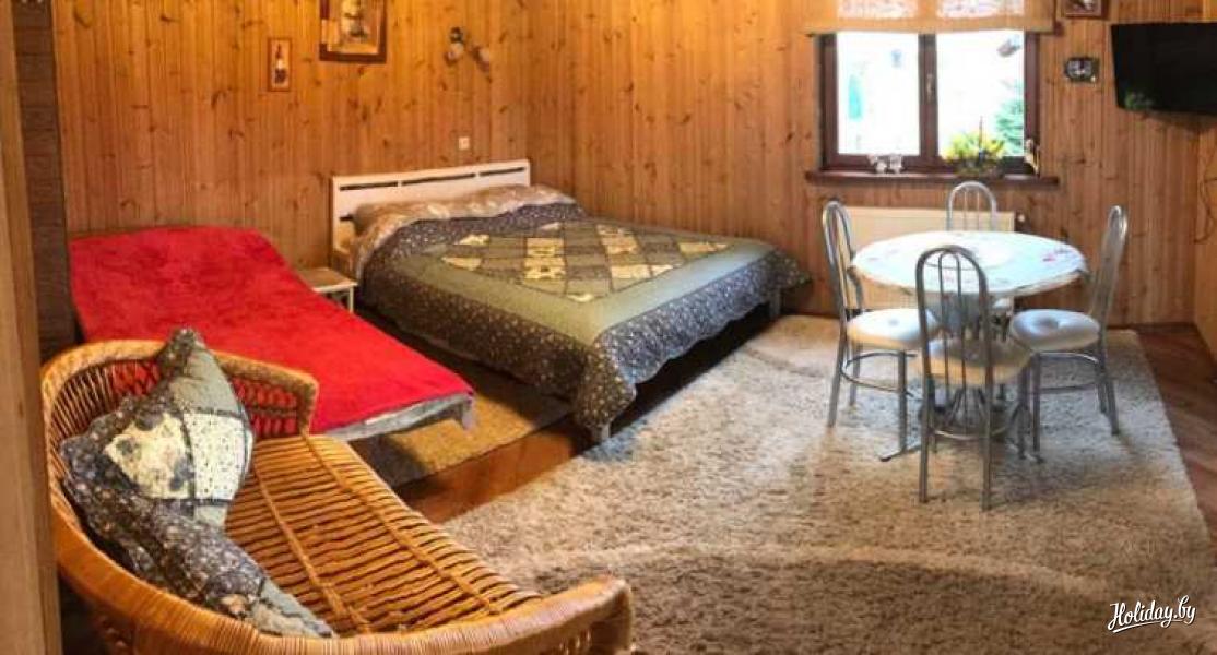В домике имеется кровать, обеденный стол, оборудованная кухня. В доме работает спутниковое телевидение, интернет. На участке есть баня для оздоровления и расслабления.