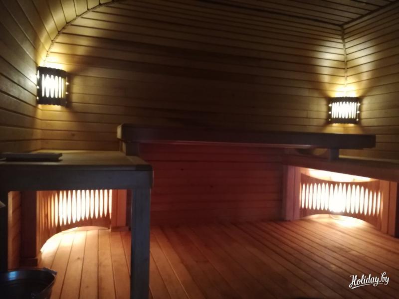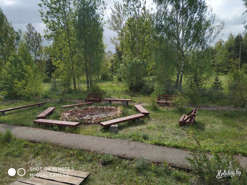 Костровая площадка с подсветкой в вечернее время, мангал, казан