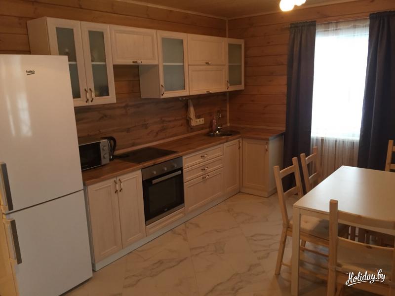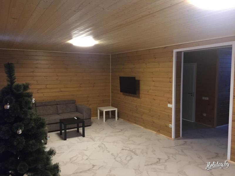 Коттедж Сосенка в Вилейском районе Минской области для отдыха компании до 14 гостей. Коттедж расположен на берегу Вилейского водохранилища. Для комфортного проживания гостей есть нужная мебель и техника, горячее водоснабжение, теплые полы, постельные и банные принадлежности. На кухне гости смогут приготовить необходимые блюда. Для ночевки предусмотрено 3 спальных комнаты в основном доме и 2 спальни в гостевом.