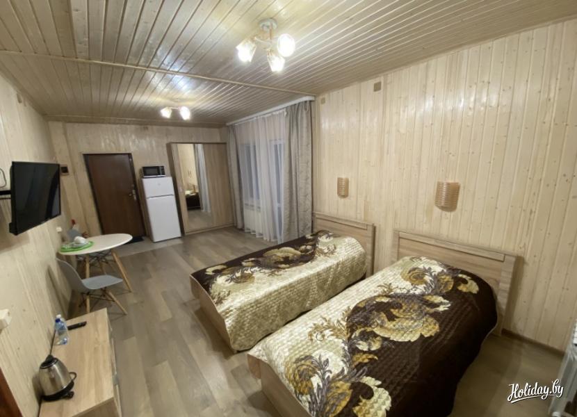 Для проживания в базе отдыха «ЛОДЭ» на берегу Лепельского озера можно снять в аренду уютный номер категории «Стандарт Комфорт». Номер «Стандарт Комфорт» расположен в деревянном двухэтажном коттедже на первом этаже с отдельным входом. Апартаменты имеют площадь 12 кв.м., оснащёны всем необходимым для комфортного проживания. В каждом номере может разместиться 2 гостя. В номере две односпальные кровати с ортопедическими матрасами, мебелью, телевизором, холодильником, микроволновой печкой, набором посуды, чайником. Номер с удобствами (душ, туалет, умывальник).
