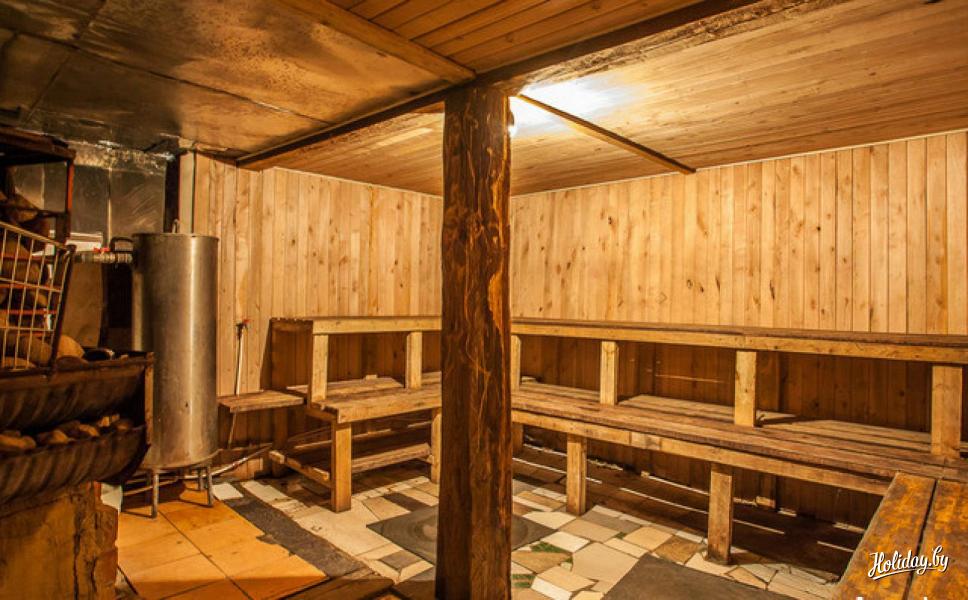 На участке есть настоящая русская баня, где можно попариться и оздоровиться.