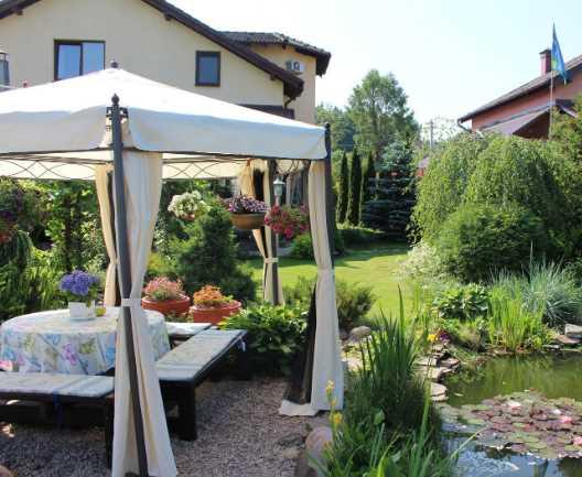 На территории коттеджа есть терраса с камином и барбекю. Имеется зарыбленный пруд, где можно ловить рыбу.