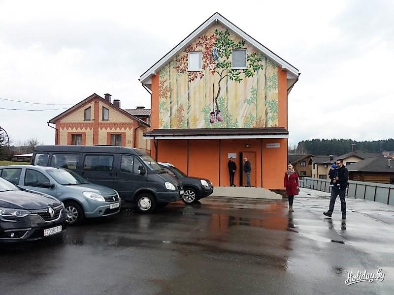 Перед зданием есть большая охраняемая парковка на 5-6 авто, за домом – газон, где можно поиграть в бадминтон, волейбол, мини футбол. Летом бассейн, батут, спортгородок. Есть фотозона и площадка для стрельбы из лука и пневматического пистолета.