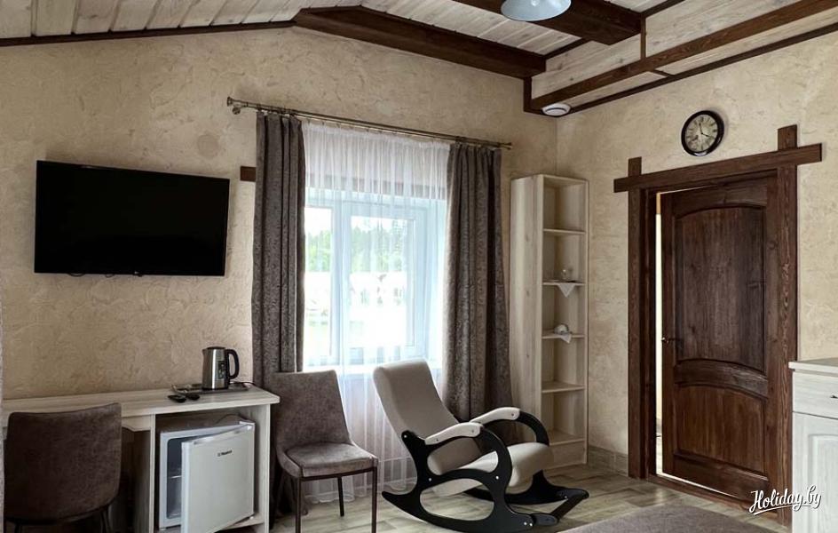 Комфортабельный домик находиться на берегу озера Получье. Подойдет для любителей и спокойного, и активного видов отдыха.