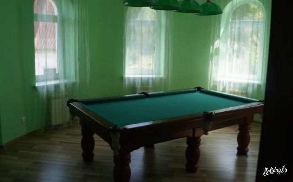 В коттедже есть камин, бильярд, телевизор и домашний кинотеатр. На территории коттеджа построена баня и есть беседка для душевных посиделок с обустроенным мангалом.