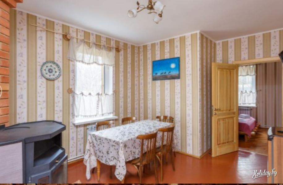 Коттедж на сутки «Алабама» в гостинично-развлекательном комплексе «Ранчо» в 20 км от Гомеля готов разместить на отдых компанию до 7 человек. Дом в аренду имеет 3 спальные комнаты с необычными деревянными односпальными и двуспальными кроватями, гостиную с обеденной зоной и камином, санузел с душевой и полотенцами. Есть возможность оборудовать доп.спальное место. В доме есть телевизор, холодильник, фен, чайник.