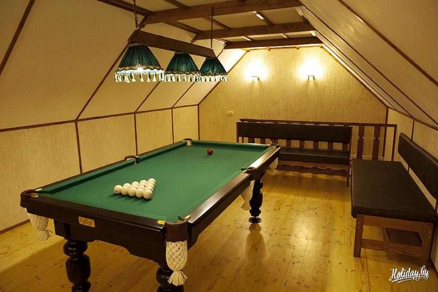 На втором этаже усадьбы к вашим услугам две спальные комнаты и бильярдная.