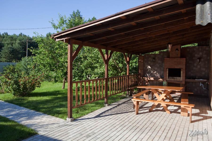 Вы не будете скучать и во дворе усадьбы «Аленка». Под большим навесом можно отдохнуть, сварить уху и пожарить шашлыки. Рядом с домиком аккуратный, чистый пруд. Территория обнесена забором со всех сторон. Удобная парковка.