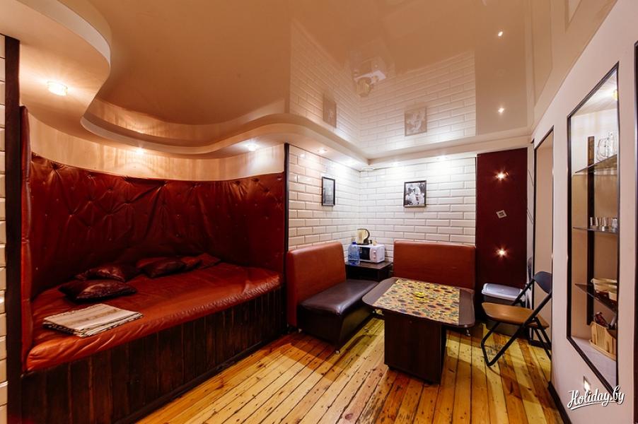 Одна из отличительных особенностей усадьбы под Минском — наличие сразу нескольких бань. Если вы планируете арендовать усадьбу большой компанией, тогда вам предложат попариться в просторной русской бане, рассчитанной на 15 человек. Также здесь есть маленькая баня с бассейном для 6 человек. После горячего пара нет ничего приятнее провести время на свежем воздухе. Для этого в усадьбе есть беседка и две открытые летние террасы с панорамным живописным видом. Кроме того, отдыхающие смогут расположиться в уютном гамаке, а маленькие гости — на качелях.
