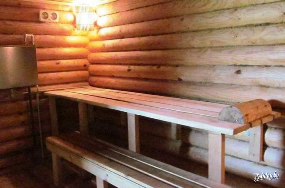 В бане есть парная, отделанная деревом, душевая, предбанник и комната отдыха. Парная может использоваться как сауна и как русская баня. В парной смогут разместиться до 6 человек. На выходе из парилки имеется деревянная купель с холодной водой. В парилке можно использовать различные эфирные масла для ароматерапии. В бане имеются качественные веники: береза и дуб.