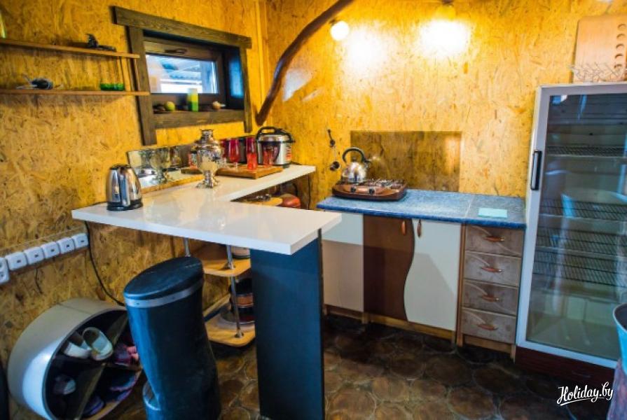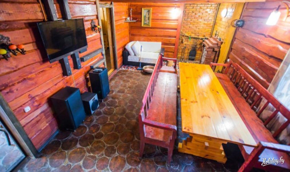 На территории усадьбы расположен уютный двухуровневый дом, оснащенный всей необходимой мебелью и техникой. Здесь есть оборудованная кухн яи 12 спальных мест. В доме работает интернет и спутниковое телевидение. На участке расположена баня и беседка с мангалом.