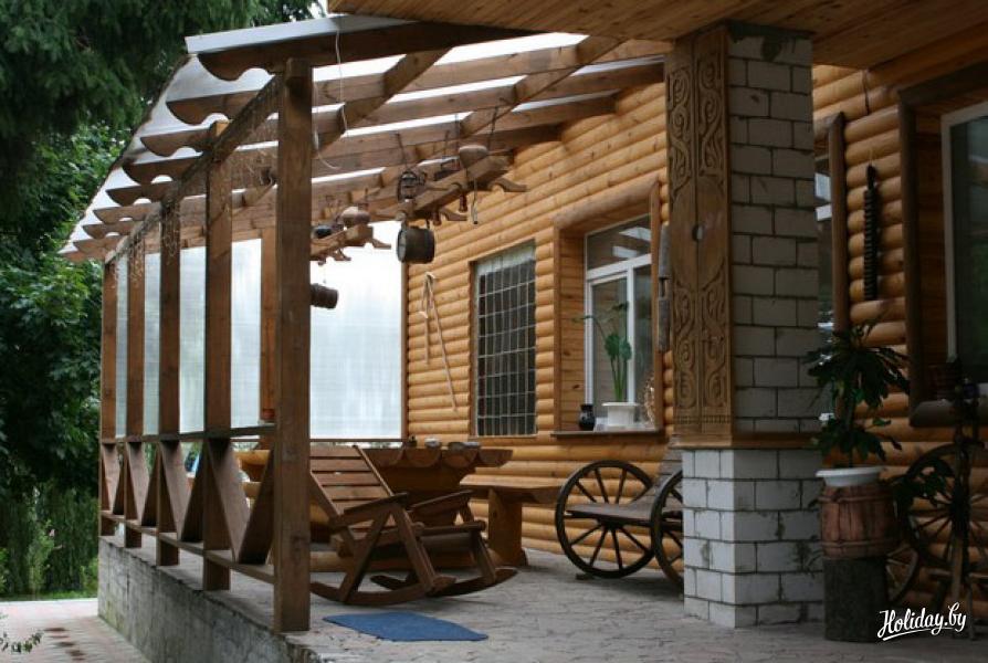 В аренду для 16 человек в усадьбе в Гомельской области предлагается пять гостевых комнат, общий холл, кухня-столовая с камином.