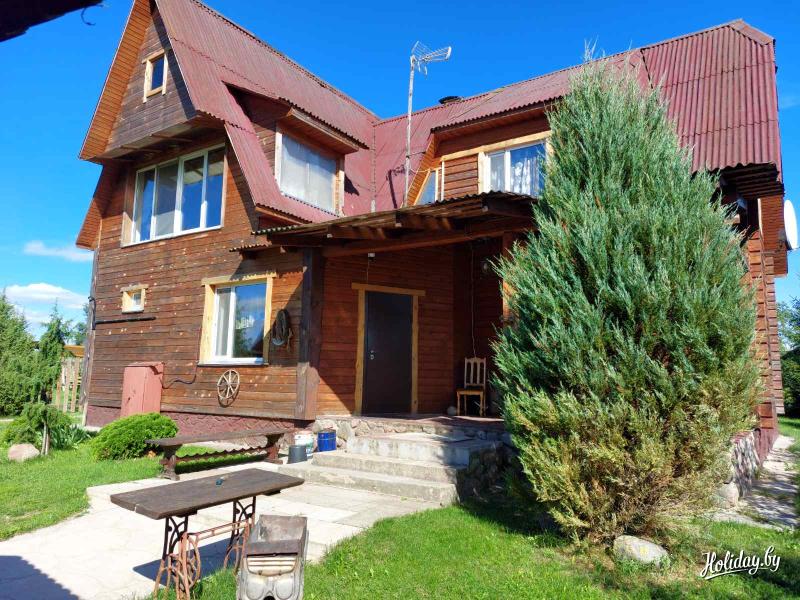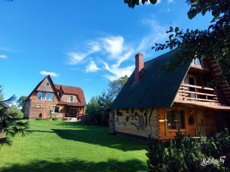 Добротный деревянный дом в аренду рассчитан на семейный отдых или отдых компаниями до 18 человек. В доме гости размещаются в уютных комнатах. В доме есть электричество, холодная и горячая вода, отопление, спутниковое ТВ, необходимая бытовая техника и посуда. В стоимость аренды усадьбы включено постельное белье и полотенца.