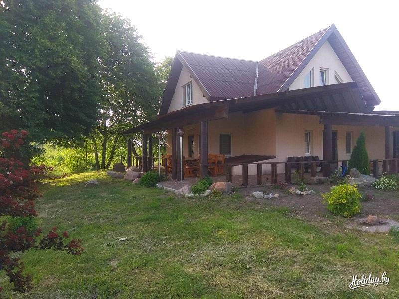 В доме-бане имеется три комнаты на 9 спальных мест. Есть русская баня на дровах, бассейн, обливное ведро, большая терраса с мангалом.
