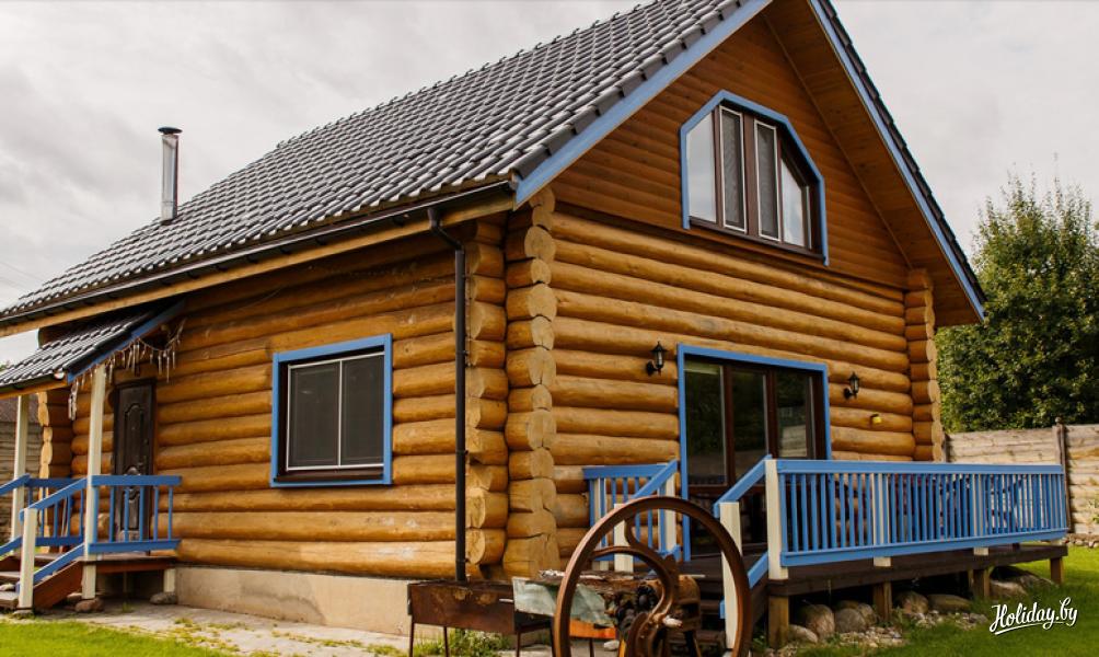 Сам домик рассчитан на комфортное проживание 8-10 человек. В доме имеется душ, туалет, горячая вода. Ирландский камин отлично подойдет для теплых бесед за бокалом вина. Витраж первого этажа имеет выход на террасу с видом на озеро Должа.