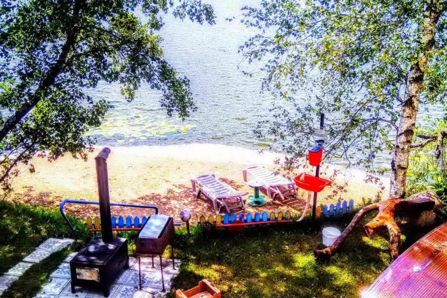 На территории усадьбы имеется печь, два мангала, качели, две беседки вместимостью по 13 чел., пляжные и садовые шезлонги для отдыха и загара, зонты, два пирса для отдыха и купания.