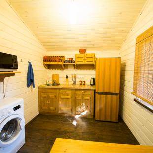 На территории усадьбы расположено четыре уютных домика, каждый из которых вместит до 6 гостей. Домик №1 оснащен кухней с посудой и бытовой техникой, санузлом. Здесь есть спутниковое TV и караоке, оборудованы теплые полы. После насыщенного дня особенно гостям понравится русская баня, которая поможет расслабиться и снять усталость.