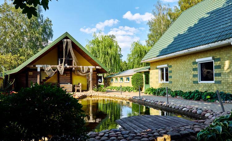 В доме имеется кухня с нужной посудой и техникой: чайником, холодильником, плитой, духовкой. В усадьбе есть баня на дровах с бассейном и гидропушкой. На территории усадьбы имеется площадка для приготовления шашлыка.