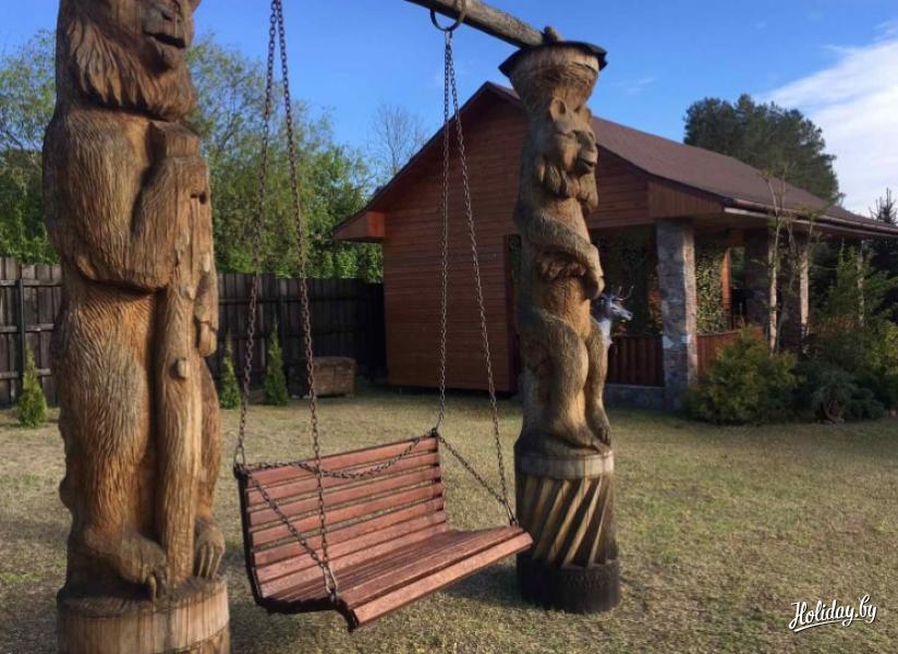 За домиком закреплена собственная изолированная мангальная зона и большая беседка-терраса со старинной кроватью и обеденной зоной со столом и мебелью для отдыха. Здесь можно отдохнуть большой компанией и насладиться чудесным видом на Неман. Особенно оценят террасу молодые родители, ведь дневной сон малышей будет еще крепче на свежем воздухе.