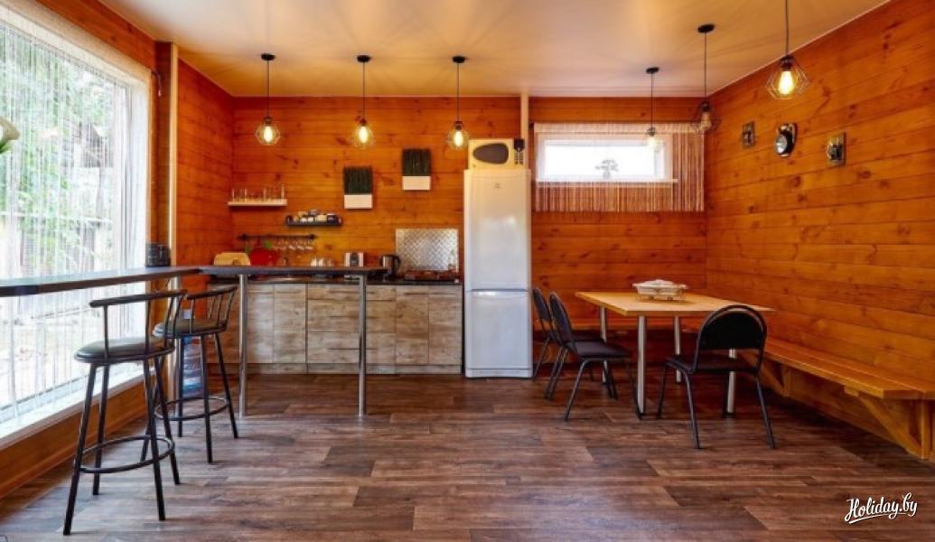В доме усадьбы имеется 6 спальных комнат, 2 санузла, большой зал с камином, оборудованная кухня. Есть TV, Wi-Fi, караоке, летняя терраса. В бане усадьбы имеется парная на дровах и купель.