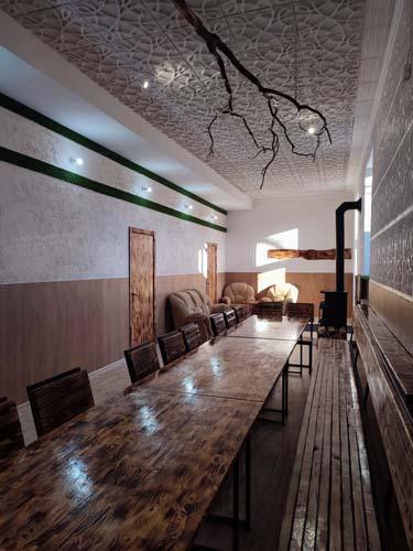 Сдаются в аренду: каминный зал, жилые комнаты (комнаты с двуспальными кроватями, комната с 6 спальными местами).