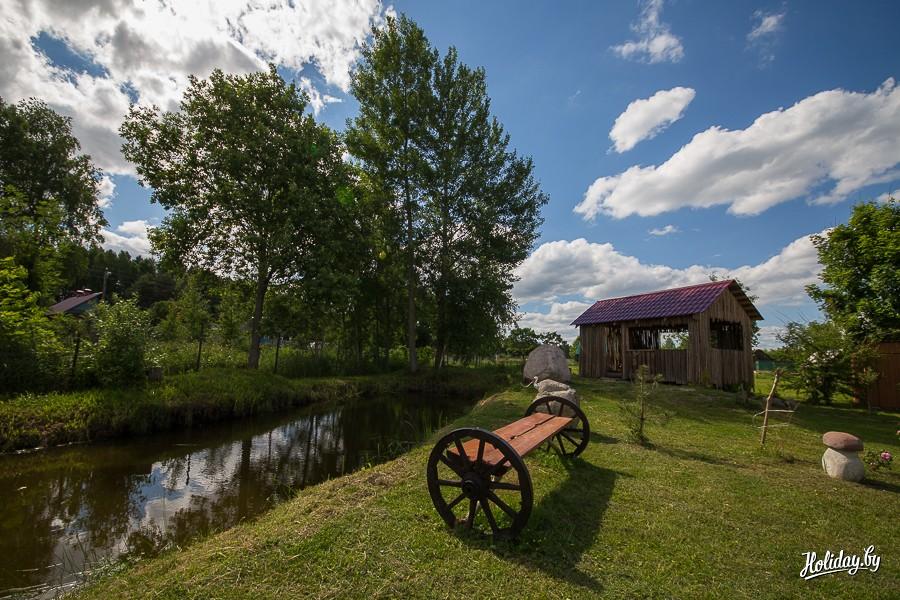 В усадьбе под Минском вы найдете деревянный домик, в котором есть кухня с имеющейся в ней посудой, газовой плитой и другим оборудованием, душ с горячей и холодной водой, комнаты отдыха, телевизор.