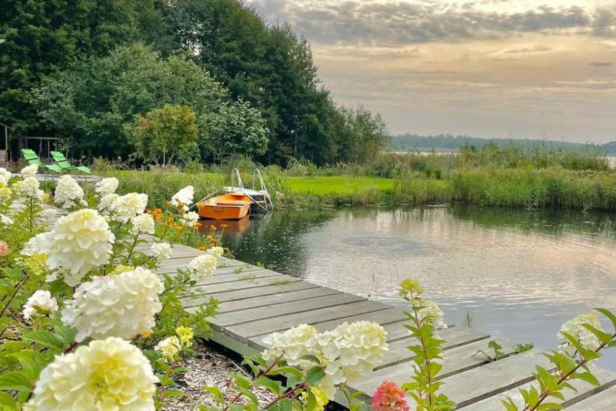 Романтическая хижина на берегу озера на краю деревни, большая мягкая кровать, горячая купель, пруд для купания, детская площадка, лодка, вкусные пиццы из печи и уникальное развлечение - квест «Сокровища старой усадьбы».