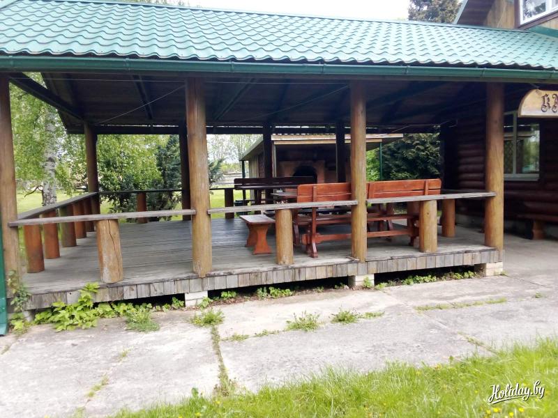 Тут созданы все условия для семейного и корпоративного отдыха. До небольшого пруда рукой подать, можно долго смотреть на водную гладь, сидя на садовых качелях. Рядом с водой есть крытая беседка, тут можно не просто выпить чаю, а устроить настоящее застолье. Она рассчитана на 40 человек, и сдается как вместе, так и отдельно от самого дома. Крепкая, с отличным навесом, беседка станет отличным решением для свадьбы или неформального делового мероприятия.