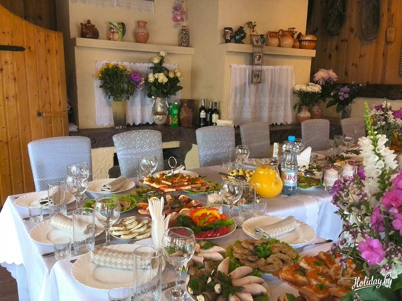 Есть парная на дровах и бассейном, а также просторный банкетный зал. На территории обустроена беседка с мангалом.