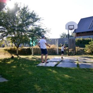 На территории усадьбы находится беседка-навес, где гости смогут отдохнуть и провести время с друзьями. Здесь есть место для разведения костра, садовая мебель, кухня на террасе с мойками и настольной электроплитой. Для любителей активного отдыха и ДЕТЕЙ — волейбольная площадка, баскетбольная площадка с кольцом, площадка для мини-футбола с воротами, мячи, боксерская груша, турник, брусья, хулахуп, скакалки, велосипеды, батут, игровой комплекс (домик, горка, щит для лазания (скаладром), шведская стенка (лестница)), качели, детский бассейн, песочница, игрушки, фрисби, бадминтон, бумеранг, шашки, шахматы, нарды, карты, домино и др.