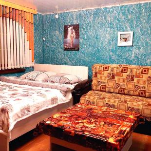 Гостевой домик для семьи подходит для размещения одной семьи (однокомнатный) до пяти человек, отделка которого выполнена из натурального дерева и камня. В номере имеется необходимая новая мебель, в том числе: 1 двуспальная кровать, 2 полуторные кровати, диван-кровать (двуспальное место), шкаф-купе, тумбочки, стол, фен, холодильник, микроволновая печь, электроплитка, электрочайник, посуда и столовые приборы, телевизор с плоским экраном (спутниковое триколор + эфирное). Кухня с мойкой (холодная, горячая вода) расположена на террасе.