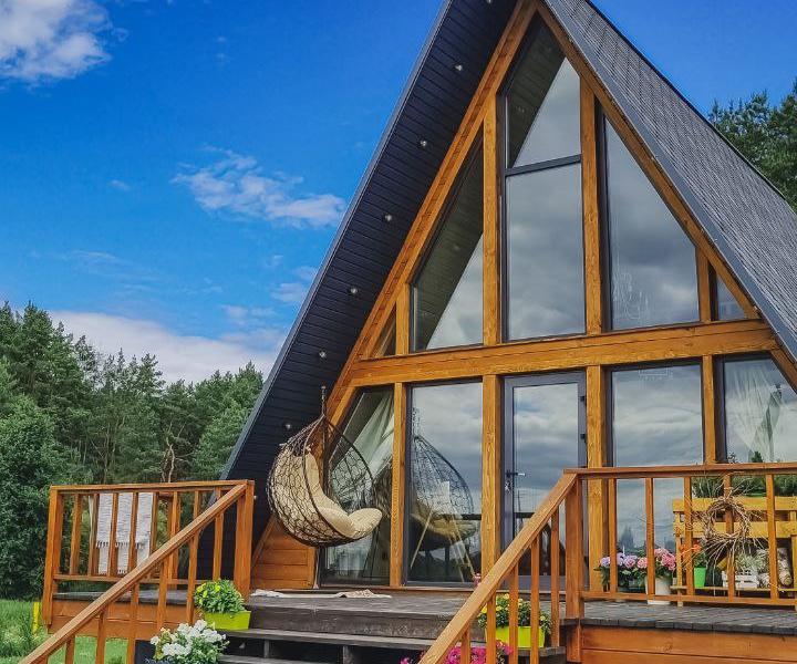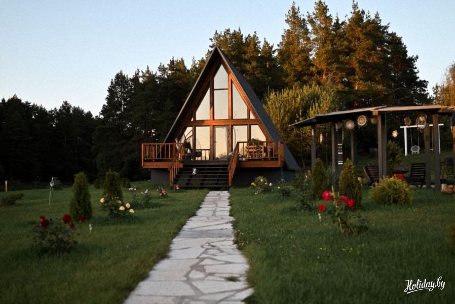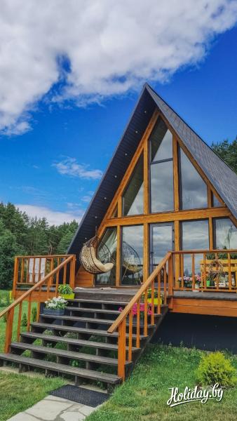 САМЫЙ ВЫСОКИЙ и большой дом в Беларуси в стиле AFrame. Домик расположен на большом участке на опушке многолетнего соснового леса, за которым протекает река «Вилия». Также у нас можно искупаться в настоящем СИБИРСКОМ банном ЧАНЕ под открытым небом, наслаждаясь пением птиц.