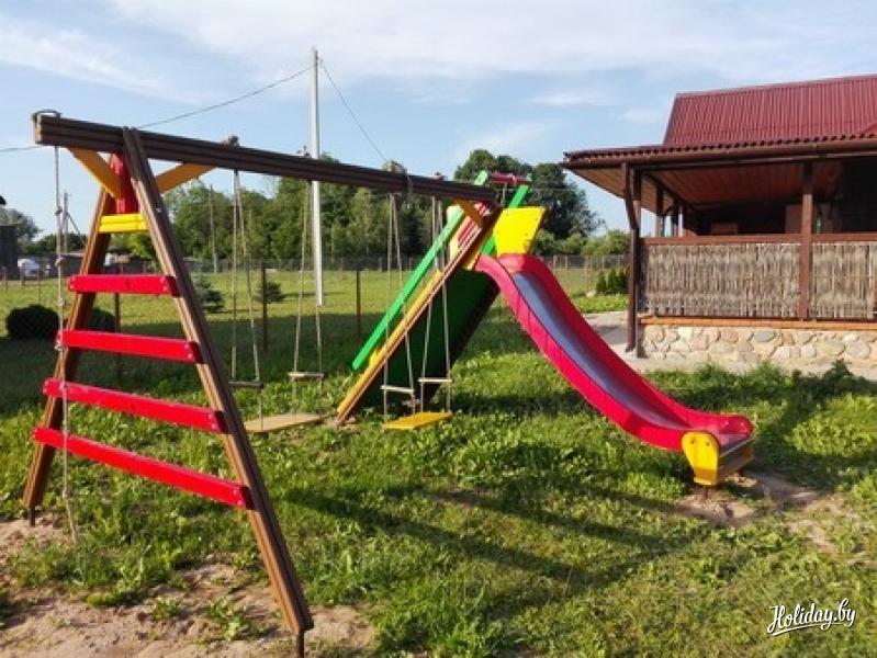 Для детей есть спортивный комплекс (горка, стенка, качели). Для активного отдыха взрослых есть волейбольная площадка с сеткой.