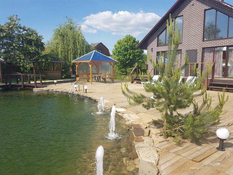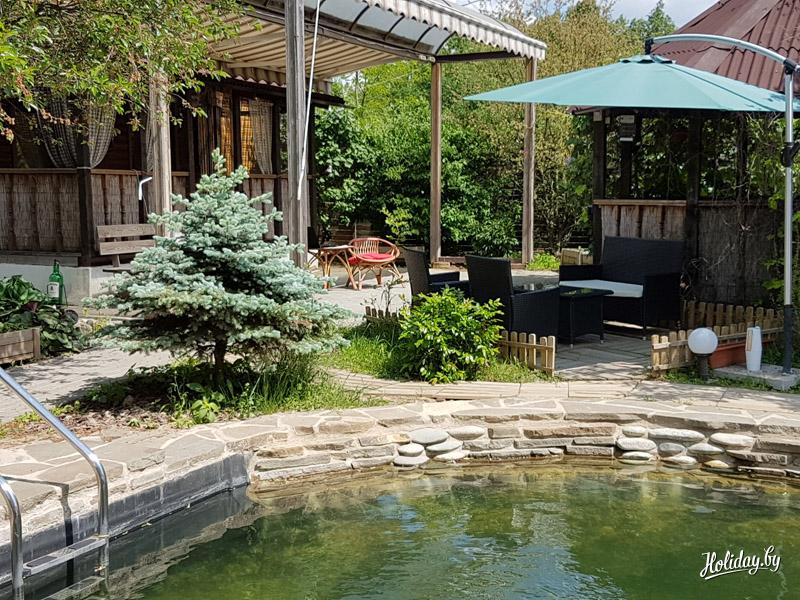 Отдельного внимания заслуживает приусадебная территория. Здесь созданы все условия для отдыха и развлечений на любой вкус. Гости круглый год могут купаться в огромном пруду. Для своих постояльцев владельцы усадьбы предлагают совершить прогулку по окрестностям на велосипеде, прокатиться на квадроциклах, попариться в русской бане на дровах или в японской бане фурако. А после баньки можно отлично расслабить мышцы в крытом бассейне, затем поиграть в бильярд, либо полежать в гамаке, наслаждаясь окружающей красотой.
